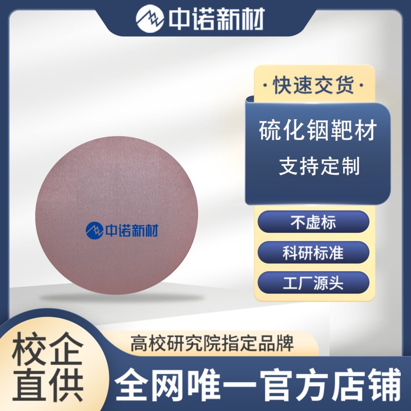 硫化铟(In₂S₃)靶材是一种重要的n型半导体靶材,通过磁控溅射、脉冲激光沉积(PLD)等工艺成膜后,凭借2.0–2.8 eV的可调带隙、高可见光透过率、优异光电响应、无毒环保、化学稳定性强、低温成膜适配性好等核心特性,在薄膜光伏、光电探测、光电子显示、传感、储能、光催化等领域应用广泛,尤其作为无镉环保缓冲层成为光伏行业的关键替代材料。